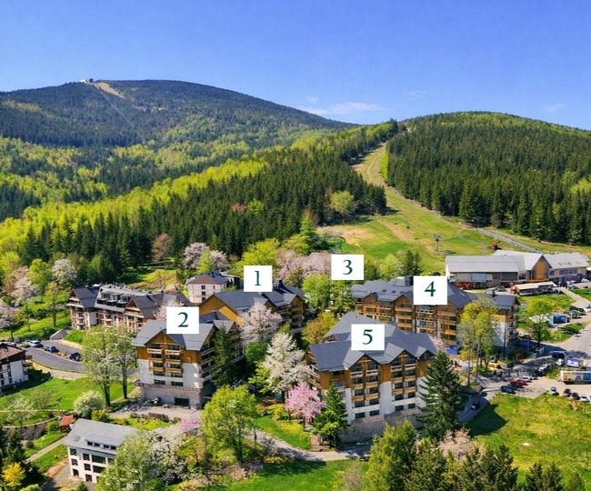 Apartamenty znajdują się w budynkach nr 2, nr 3, nr 4, nr 5;